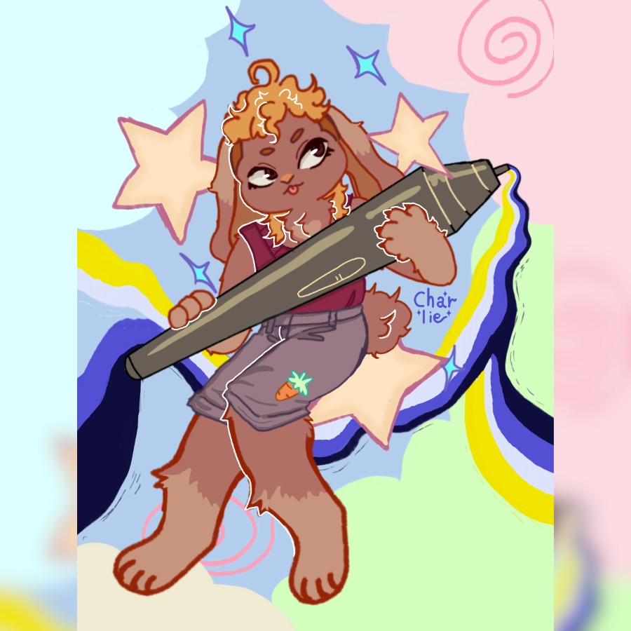 Charlie é artista não binário que se aventura nos em vários estilos diferentes, com a arte voltada pra séries, livros, novels, fantasia e o público lgbt+.